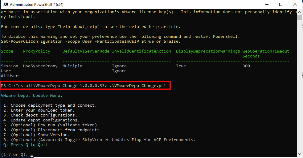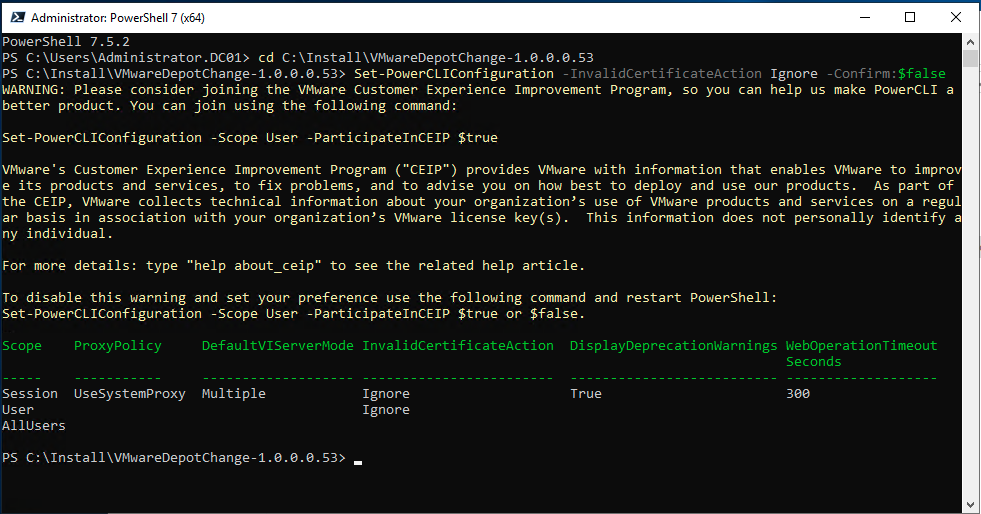 Execute the VMwareDepotChange.ps1 script: