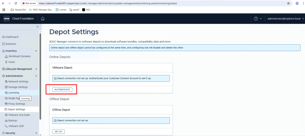 - How to update the Depot URLs in vCenter or SDDC Manager