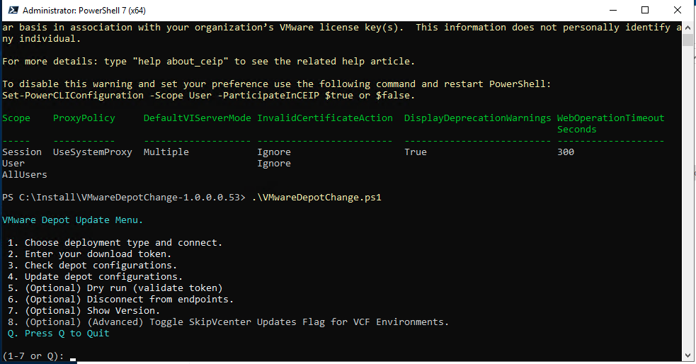 Choose Option 4 — the script will replace all Depot URLs with the new Broadcom URLs automatically.